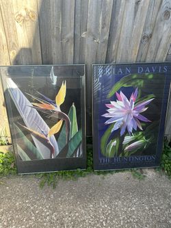 Pair Of Brian Davis Framed Posters Heavy Cactus Orchid And Bird Of Paradise $150Parma, OH