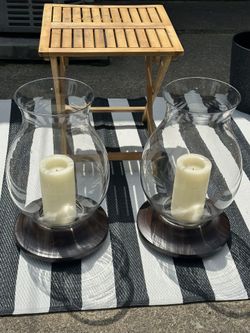 Set Of Two Crate And Barrel Hurricane Lamps With Stands And Battery Candles$60Parma, OH