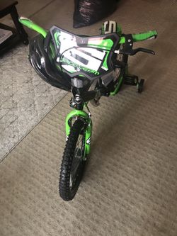 Surge Boys Green and Black Bicycle with helmet and removable training wheels$60Los Angeles, CA