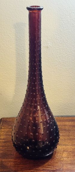 Mid Century 1960s Empoli Bottle Deep Plum Italian Glass Genie Decanter Hobnail Vase - 16” Tall $60Houston, TX