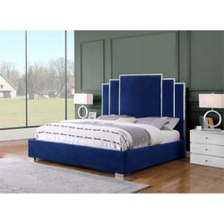 Queen 63" Geometric Headboard and Bedframe in Blue Velvet - Adjustable Bed And Mattress $900San Dimas, CA