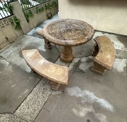 Sold4-Piece Desert Sand Concrete Round Outdoor Dining Table Set$200San Dimas, CA
