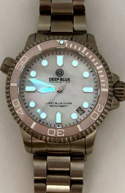 Deep Blue Precision River Lizzy Blue diver watch, 36mm size case, 6in size wrist bracelet. $165West Covina, CA