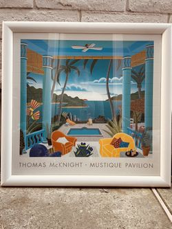 Thomas McKnight “Mustique pavilion” Colorful Tropical Illustrated Veranda Scene Artwork$20San Juan Capistrano, CA
