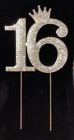 Number 16 Rhinestone Princess Crown Monogram Cake Topper - Sweet 16th Birthday Party (Gold)$18San Antonio, TX