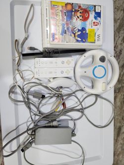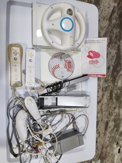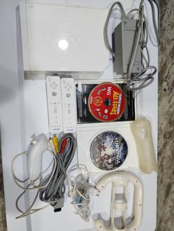 Nintendo Wii White RVL-001 – Bundle with 2 Games + Wheel + 2 Controllers$110Boca Raton, FL