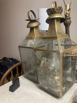 Pair Of Vintage Turkish Yuksel Oil Burner Lanterns With Etched Glass, Original Burners, Solid Brass $150Colorado Springs, CO