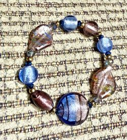 Vintage Blue & Purple Murano Art Glass Chunky Beaded Gold Tone Bracelet 8"$25Oro Grande, CA