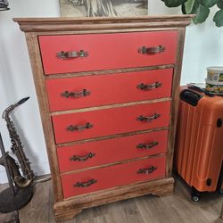 Unique and Stylish solid wooden dresser with burned orange 5 drawers and leather Handles$465Long Beach, CA