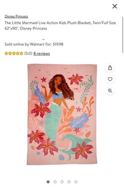 The Little Mermaid Live Action Kids Plush Blanket, Twin/Full Size 62"x90", Disney Princess$15Arlington, TX