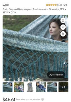 Equip Gray and Blue Jacquard Tree Hammock, Open size: 81" L x 59" W x 0.1" H$40Arlington, TX