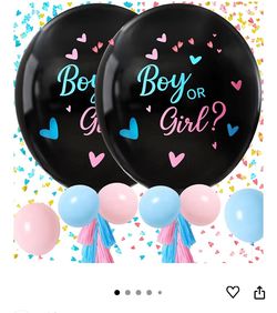 Gender Reveal Balloon Kit, 2pcs 36" Jumbo Black Balloons with Blue Pink Balloons, Tassels and Heart Shaped Paper Confetti for Baby Gender Reveal Party$40Sacramento, CA
