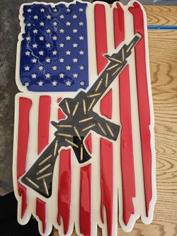 Laser cut american flag with ar cut out, resin filled with 5.56 casings. flood coated with resin measurements are 15.5x29$150Miami, FL