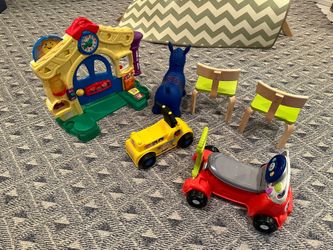 Toddler toys - 2 ride on cars, 2 chairs, bouncy horse, play station$50Chicago, IL