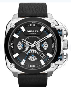 Diesel Silver+ Black Tone Black Leather Band $140Pompano Beach, FL
