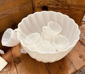 Vintage White Milk Glass Punch Bowl and Cups Holiday Serving Ware$60Oregon City, OR
