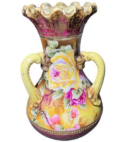 Antique Nippon 3-Handle Hand Painted Floral Vase Rare $400Freeport, NY