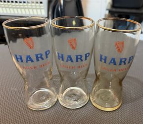 Vintage Harp Beer Glasses Gold Rimmed Set Lot of 3 Clean $10Baldwin, NY