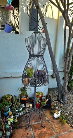 **UNIQUE VINTAGE DECOR** for Garden Porch Entry ~ Black Metal Wire Dress Bodice Form ~ Standing Hat/Coat Rack **PRETTY filled with PLANTS**$20San Diego, CA