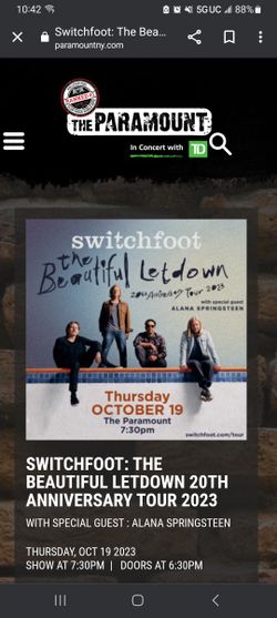 SWITCHFOOT AT THE PARAMOUNT $50Ridge, NY