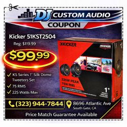 Kicker KS Series KST250 Car Speakers 1 Set 1" Silk Dome Tweeters 225 Watts 51KST2504 🚨 Payment Options Available 🚨 No Credit Needed 🚨 $1Los Angeles, CA