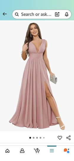 V Neck Chiffon Bridesmaid Dresses for Women Long A Line Formal Evening Gowns with Slit$100Palmview, TX