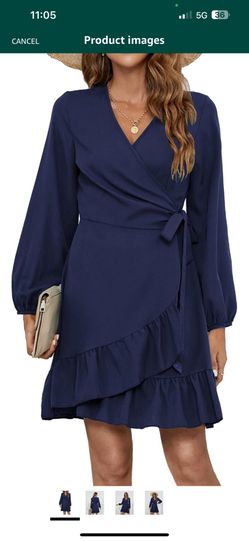 Naggoo Womens Long Sleeve Dresses Wrap V Neck Ruffle Mini Short Dress with Belt$9Grosse Pointe Woods, MI