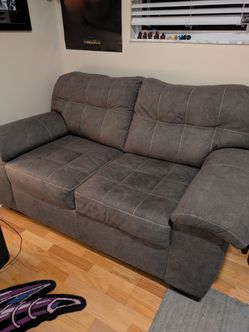 Charcoal Loveseat With White Stitched Pattern.$350Palm Harbor, FL