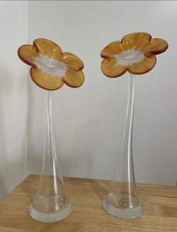 Glass Handmade Italian Flowers Orange Vase Modern $60Arcadia, CA