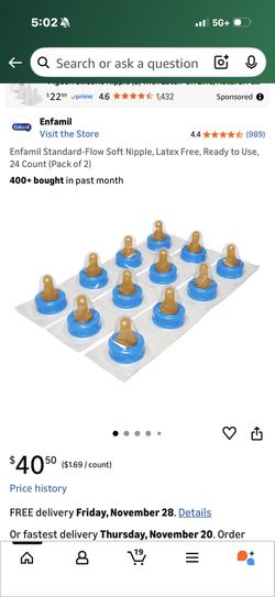 Enfamil Standard-Flow Soft Nipple, Latex Free, Ready to Use$20Redmond, WA