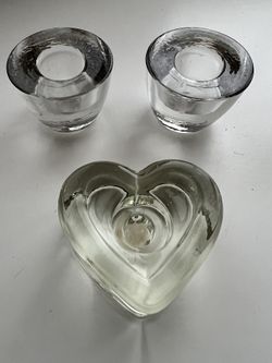 GREAT DEAL - Solid Clear Glass Candlestick Holders - Heart + Round (Set of 3)$9Rancho Palos Verdes, CA