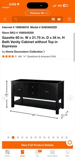 Gazette 60 in. W x 21.75 in. D x 34 in. H Bath Vanity Cabinet without Top in Espresso$260Las Vegas, NV