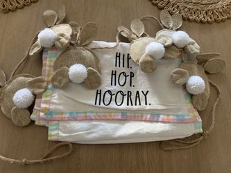 Rae Dunn Easter table runner Double sided pastel checkered Hip Hop Hooray and Easter bunny lanyard$10Riverside, CA