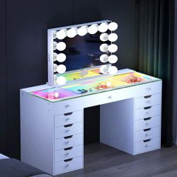 Diana RGB Vanity Desk with 6 Storage Drawers and Marilyn Hollywood Vanity Mirror$849Mesa, AZ
