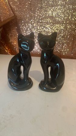8”Pair of Vintage Ceramic Black Cat Figures, Retro Black Kitty Bookends with Green Eyes, Made in Taiwan$20Norcross, GA