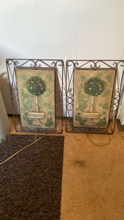 2 Vintage Hand Painted Metal sculpture Slate Tile Wall Garden Decor Hanging$20Norcross, GA