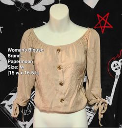 Paper moon | Woman's Tan Off the Shoulder Blouse | Size M | 15 w x 16.5 L |