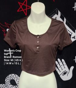 Romwe | Women's Brown Crop Top With Buttons, Lace Underlayer | Size M | US 6 $5Tulare, CA