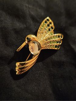 Vintage Monet Hummingbird Brooch Pin Jelly Belly Green Rhinestone Gold Tone $25Chicago, IL