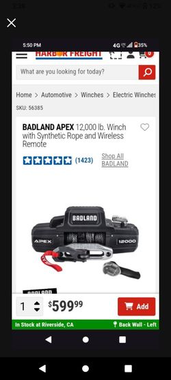 Winch- BADLAND: Apex 12000 Lb Synthetic Rope$350Corona, CA