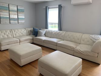 White Leather Sofa And 2 Ottomans$300Oakhurst, NJ