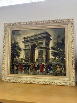 Vintage oil painting by Maurice Louis Legendre of a Parisian street scene and the Arc de Triomphe$250Los Angeles, CA