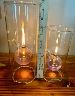 Vintage Wolfard Classic 11.5” & 9” Hand Blown Oil Lamps Art Glass $50Halethorpe, MD