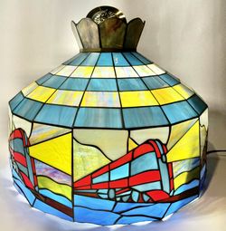 Beautiful Rare Stained Glass Train Theme Hanging Chandelier Colorful Shade$220Halethorpe, MD