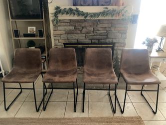 Set of 4 Dining Chairs, Mid-Century Modern Kitchen Backrest, Metal Legs, synthetic leather brown$180Fontana, CA
