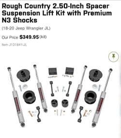 18-20 Jeep Wrangler JL ROUGH COUNTRY 2.5IN SUSPENSION LIFT KIT W/PREMIUM N3 SHOCKS$250Waltham, MA