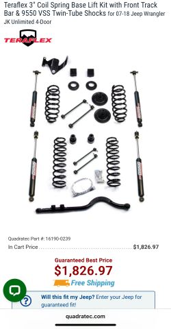 Jeep JK Teraflex 3" Coil Spring Base Lift Kit with Front Track Bar & 9550 VSS Twin-Tube Shocks for 07-18 Jeep Wrangler JK Unlimited 4-Door$1,200Hawthorne, CA