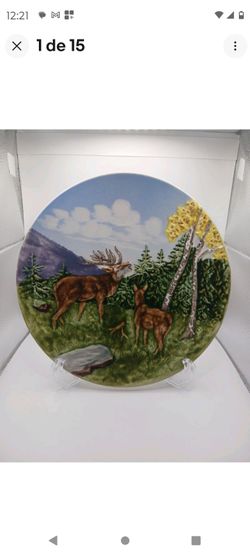 Schramberg SMF Germany Majolica Hand Painted Relief Molded Deer 9 1/2 Inch Plate$38Miami, FL