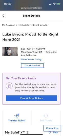 Luke Bryan Tickets Shoreline $80Turlock, CA
