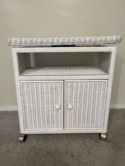 Vintage Cottage Wicker Rolling Rotating/swivel Tv Stand/sewing Cabinet$59Rossmoor, CA